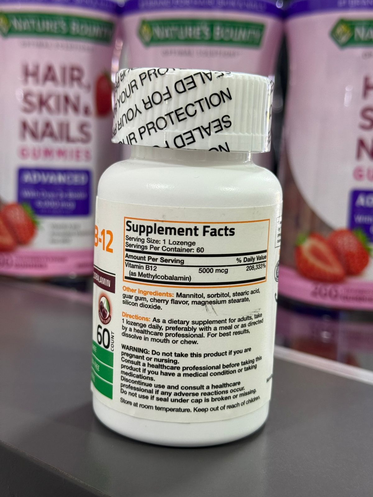 • Máxima Potencia: Cada pastilla proporciona 5000 mcg de Vitamina B-12 (Metilcobalamina).