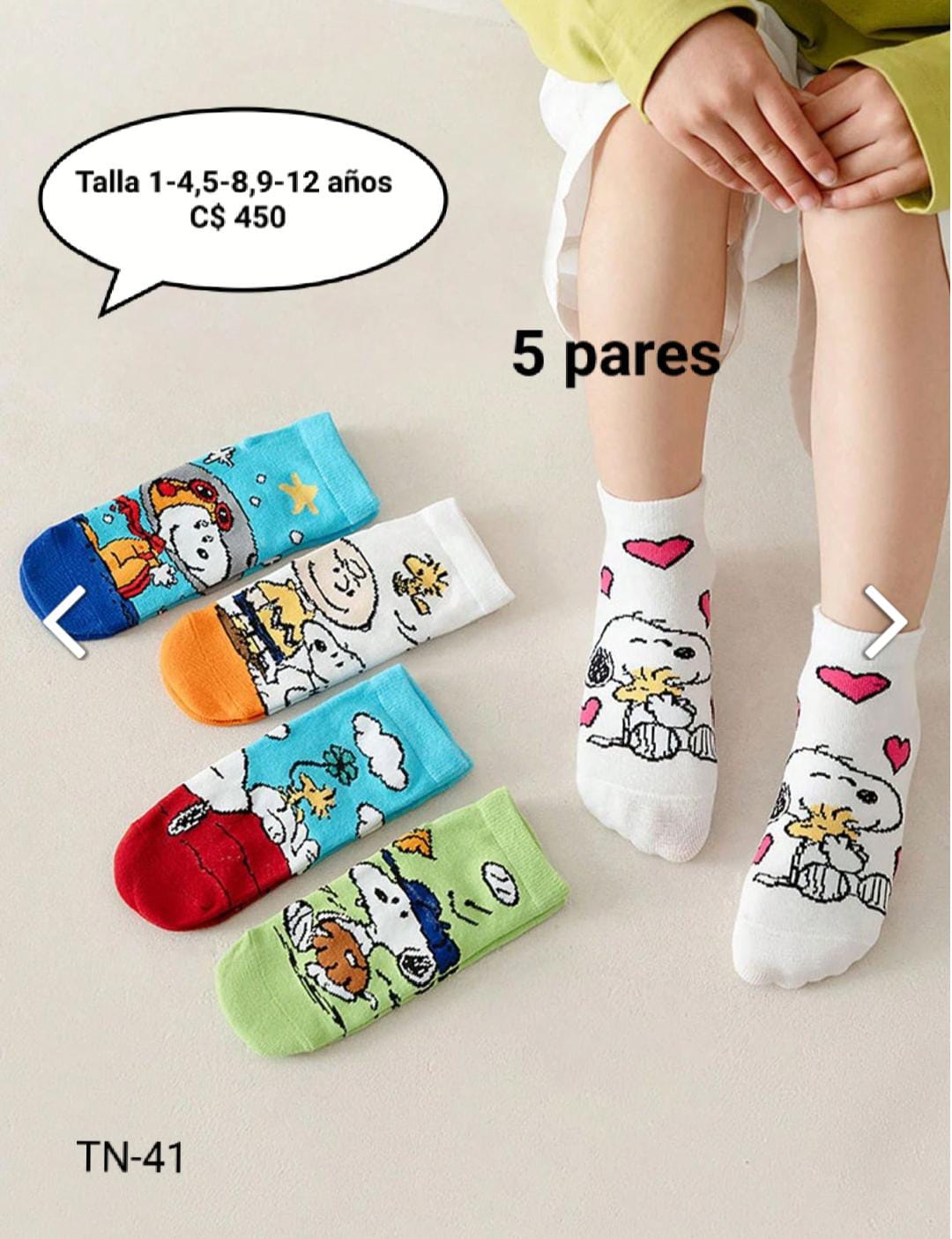 SNOOPY 5 pares de calcetines al tobillo de dibujos animados niños pequeños
