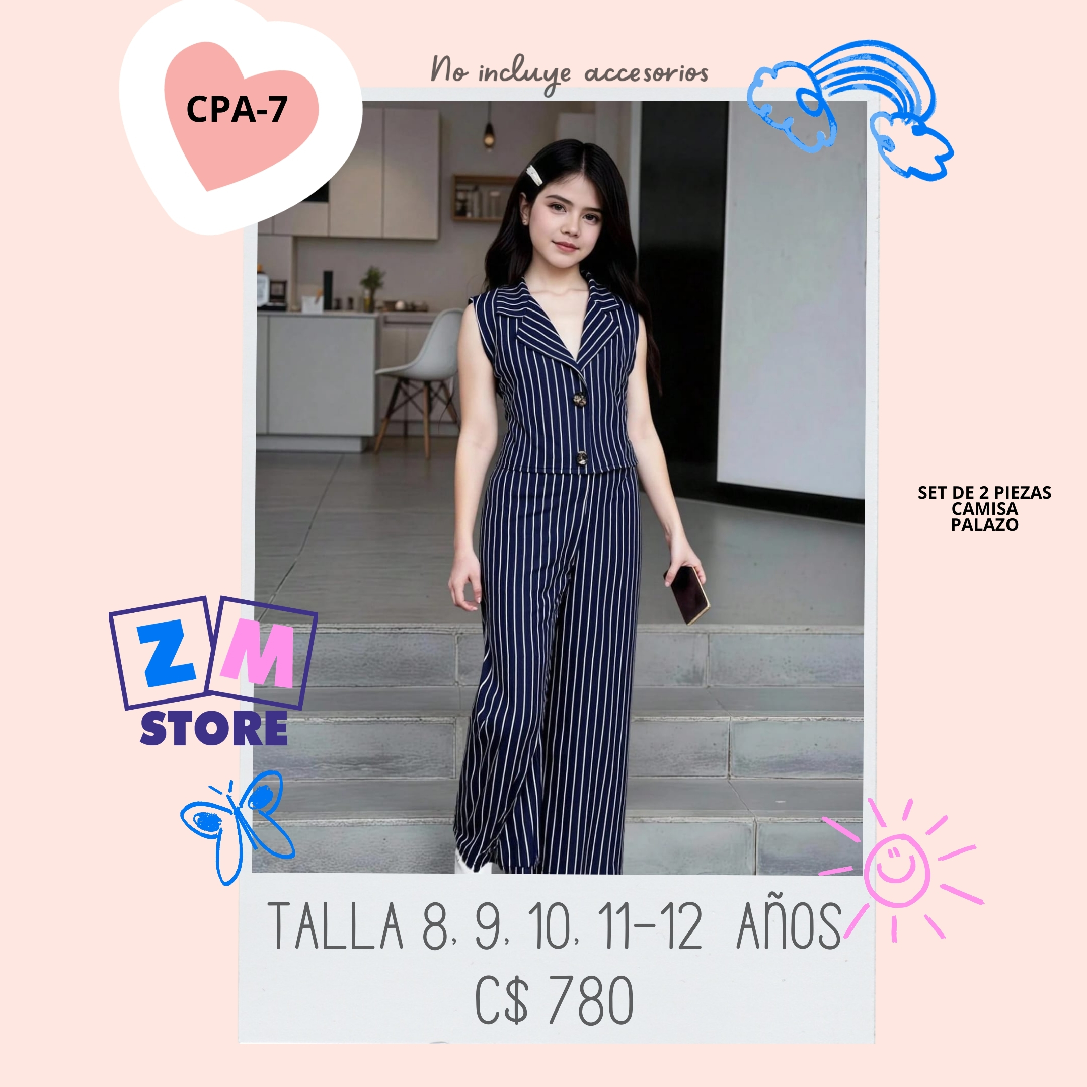 Set de 2 piezas con top sin mangas estampado a rayas y pantalones largos para niñas preadolescentes