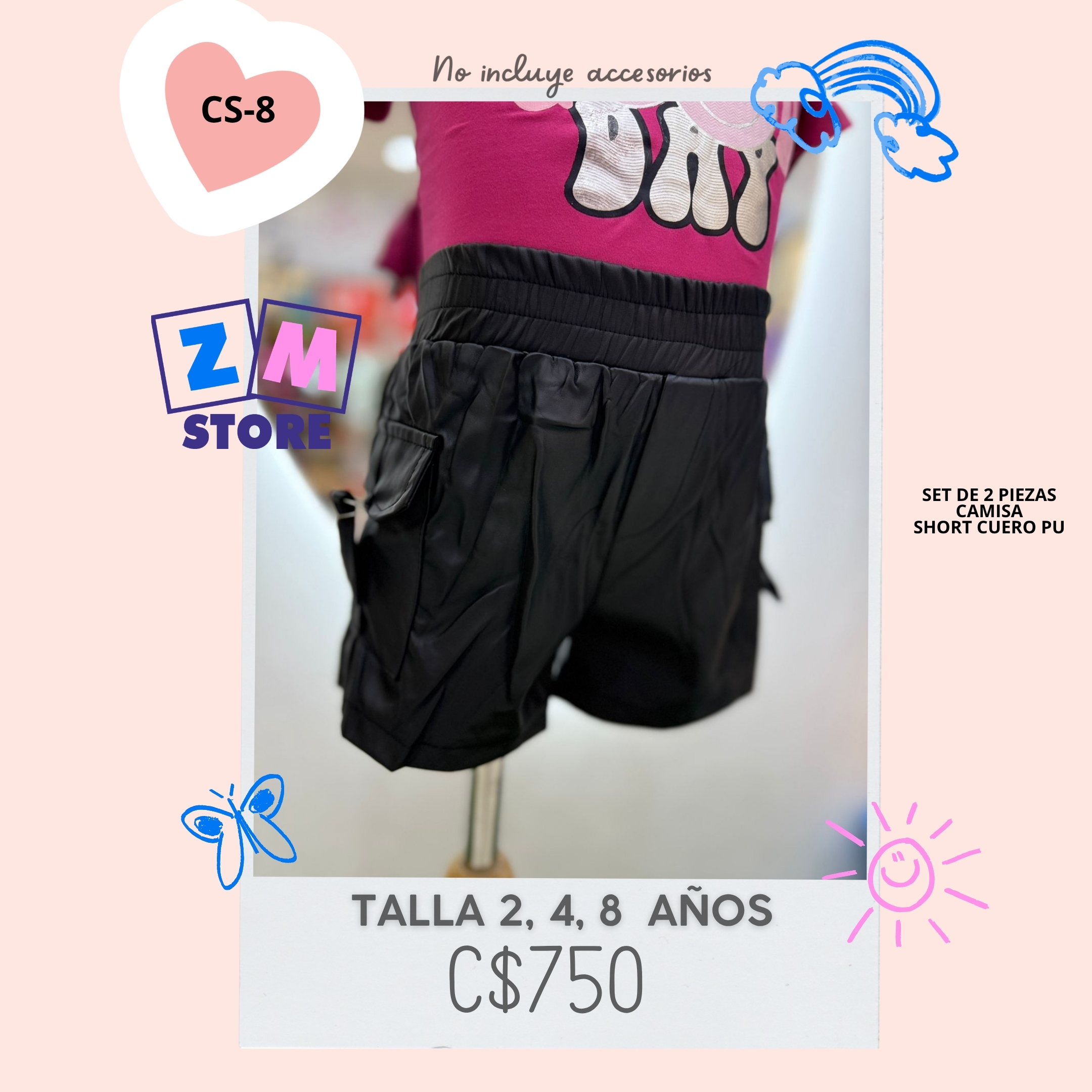 Conjunto con short de cuero PU.–CS-8