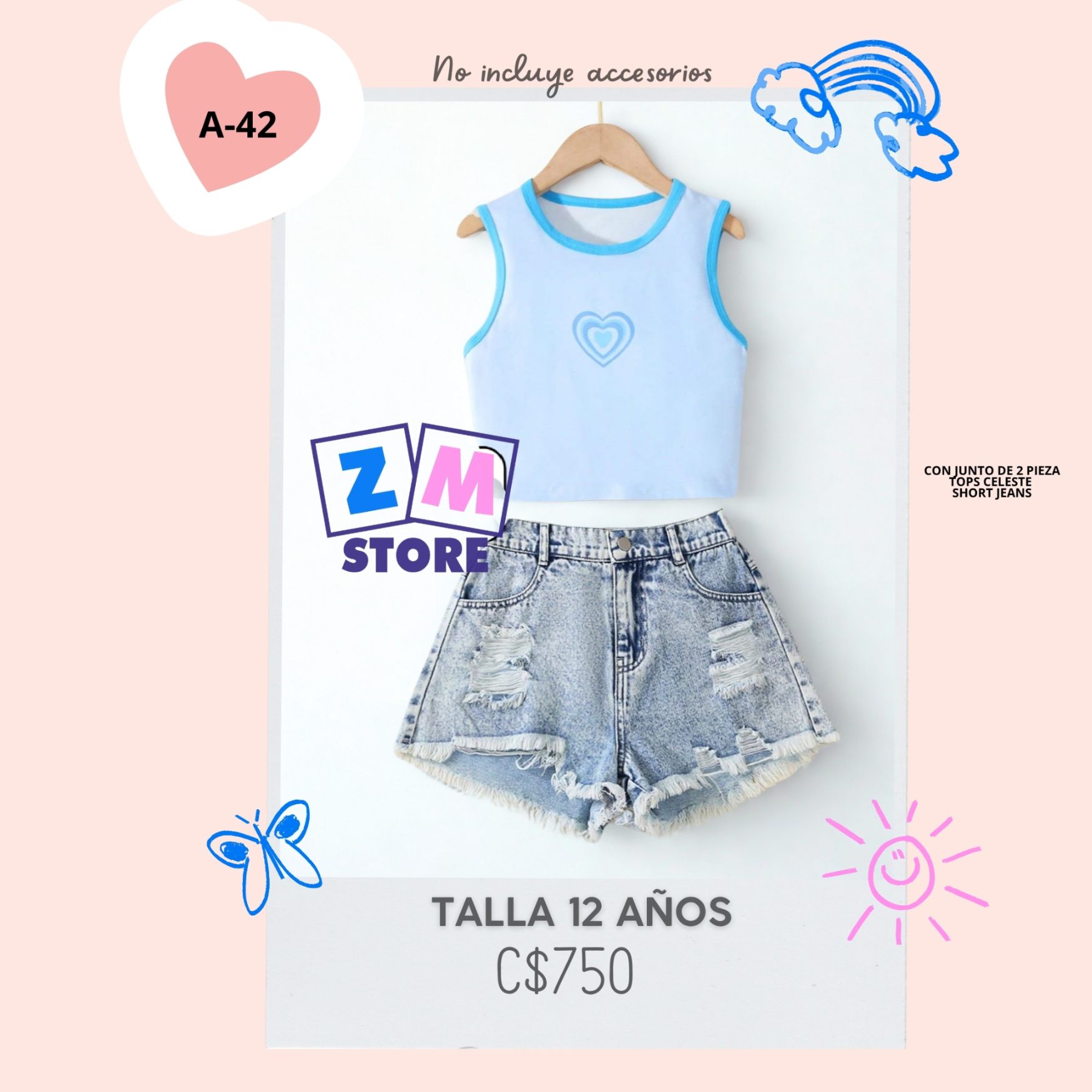 Conjunto con short jeans.–A-42