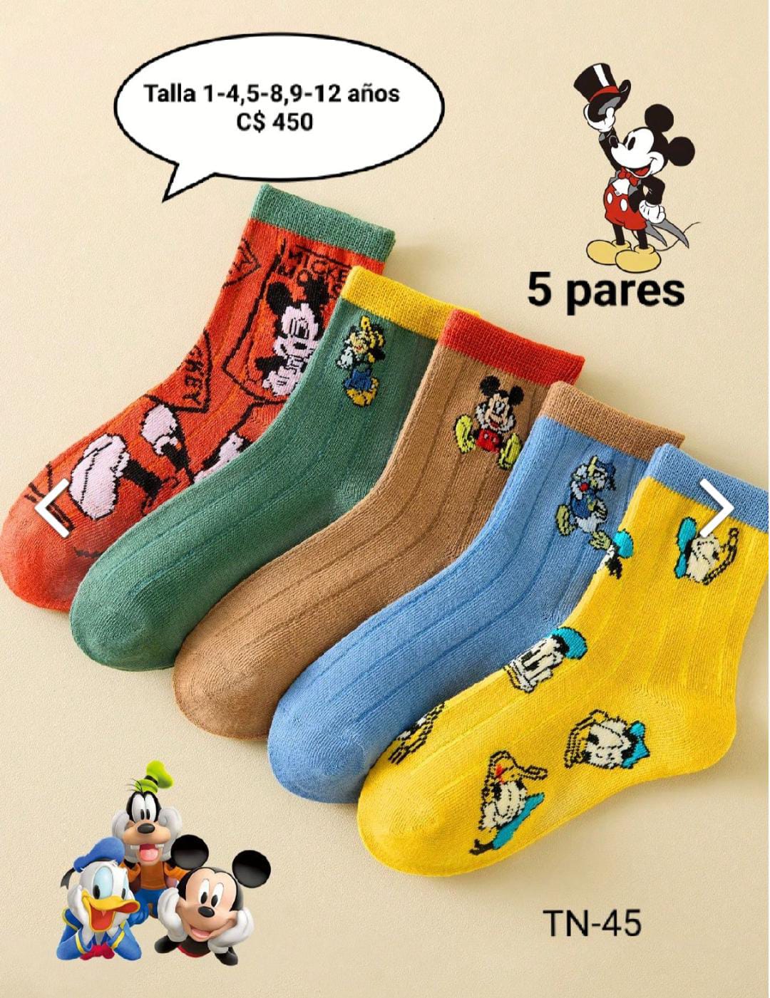Disney 5 pares de calcetines de Mickey de Disney, calcetines hasta el tobillo.