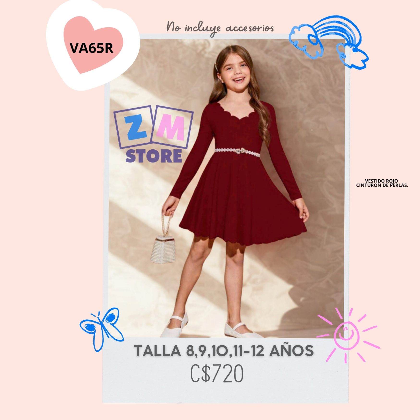 Vestido rojo con cinturón,–VA65R